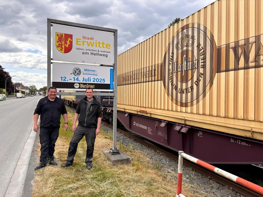 bleibt. Gestochen scharf auf dem Foto zu erkennen, das Logo unserer Brauerei. Der Warsteiner-Express kam genau zur richtigen Zeit im richtigen Tempo an uns vorbei.